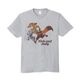 『ズートピア』の魅力的なキャラクター、詐欺師のニックと警察官のジュディが、息の合った姿で一緒にダッシュするシーンを描いた、遊び心あふれるデザインのTシャツです。